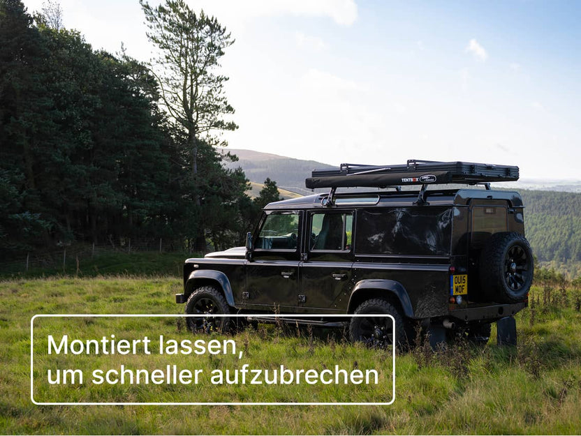 Du kannst dein TentBox-Dachzelt das ganze Jahr über auf dem Auto lassen und bist so jederzeit bereit für spontane Abenteuer – egal, ob du nach einer langen Woche einfach übers Wochenende raus willst oder nach einer Party lieber direkt in der Einfahrt übernachtest.