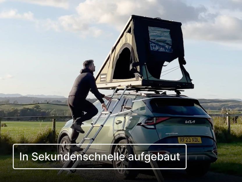 Auf jeden Fall! Alle unsere TentBox-Dachzelte sind so entwickelt, dass du sie ganz einfach aufbauen kannst. Das Öffnen und Schließen klappt problemlos alleine. Wenn du allerdings nicht sehr groß bist, kann eine kleine, klappbare Leiter hilfreich sein – damit kommst du beim Öffnen, Schließen und an die Verschlussschnallen leichter heran.