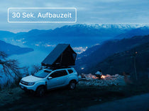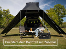 Nur beim ersten Aufbau brauchst du kurz Unterstützung von einer zweiten Person, um die TentBox auf die Dachträger zu heben. Danach kannst du alles ganz bequem selbst machen.