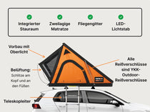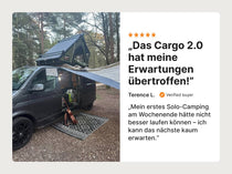 Das neue und verbesserte Cargo 2.0 ist dank seines Aluminium-Exoskeletts robust gebaut. Diese TentBox lässt sich mit einer Hand in nur 30 Sekunden, und somit am einfachsten, öffnen und schließen. Die Materialien wurden deutlich aufgewertet, und es gibt zahlreiche neue Funktionen, wie z.B. eine bequemere Matratze, ein Dachfenster, eine integrierte LED-Beleuchtung und einen abnehmbaren Vorbau.