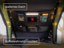 Alles ordentlich halten mit Seiten- und Dachfächern sowie großem Dachnetz.