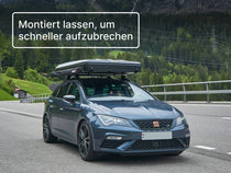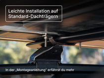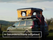 Nur beim ersten Aufbau brauchst du kurz Unterstützung von einer zweiten Person, um die TentBox auf die Dachträger zu heben. Danach kannst du alles ganz bequem selbst machen.