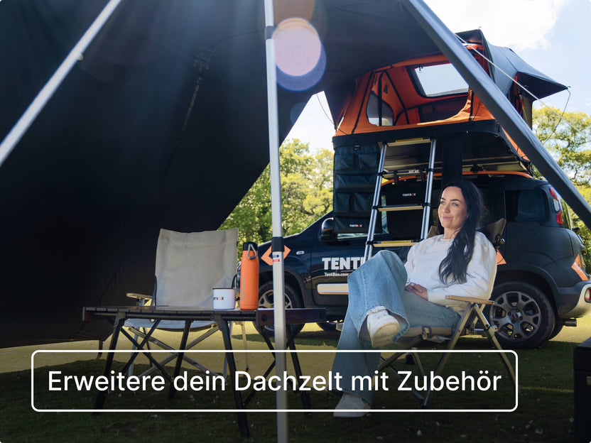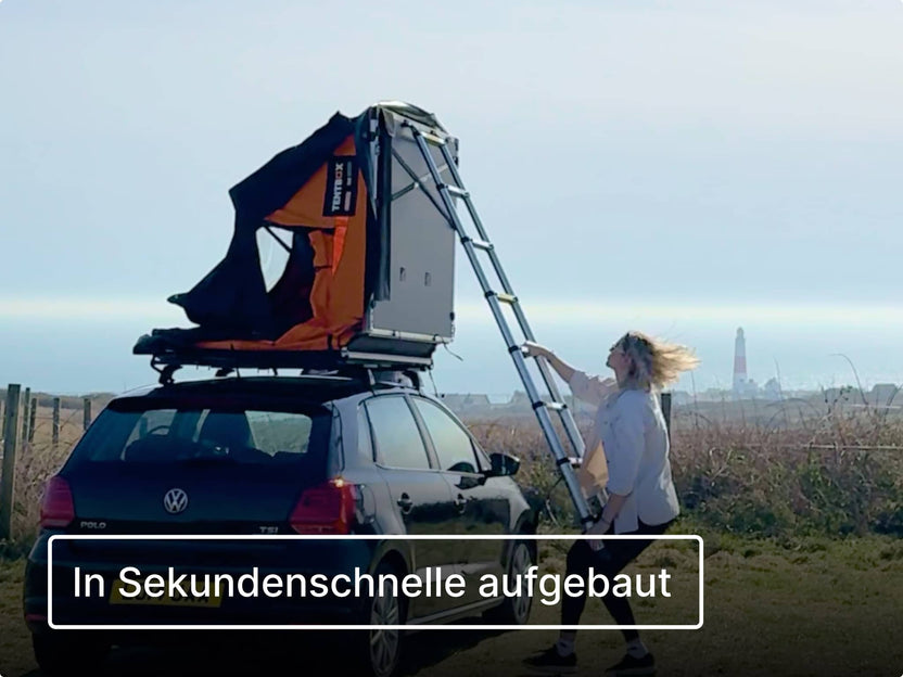 Auf jeden Fall! Alle unsere TentBox-Dachzelte sind so entwickelt, dass du sie ganz einfach aufbauen kannst. Das Öffnen und Schließen klappt problemlos alleine. Wenn du allerdings nicht sehr groß bist, kann eine kleine, klappbare Leiter hilfreich sein – damit kommst du beim Öffnen, Schließen und an die Verschlussschnallen leichter heran.
