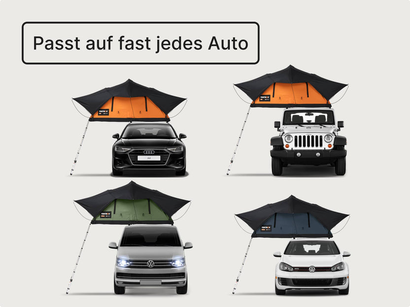 Kompatibilität: Die meisten Fahrzeuge passen zu mindestens einem TentBox-Modell. Unsere Kurzanleitung hilft dir beim Einstieg, oder du kontaktierst uns direkt für eine persönliche Beratung..