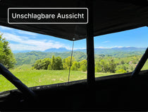 Fenster und doppelte Dachfenster bieten Rundumblick, mit Fliegengitter versehen.