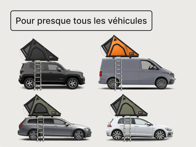Il existe une tente de toit TentBox pour quasiment tout type de véhicule, à l'exception des décapotables et des Smart.