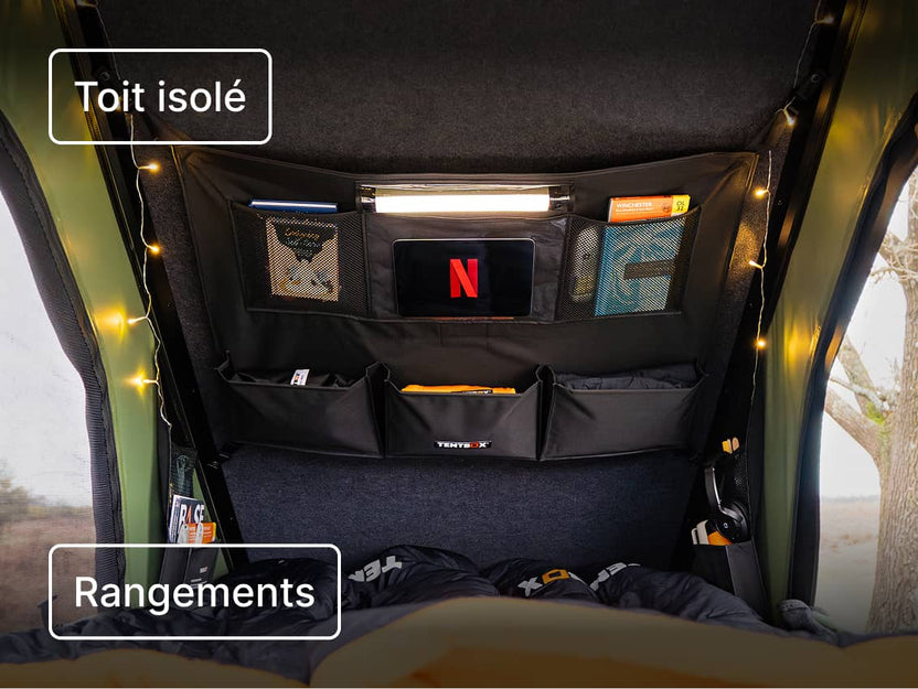Elles sont aussi très rapides à installer et sont équipées d'un matelas. Selon le modèle choisi, vous pouvez également laisser votre literie à l'intérieur lorsque vous conduisez, pour que tout soit déjà prêt dès que vous ouvrez votre TentBox.