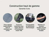 Nos tentes ont été fabriquées pour résister aux conditions les plus rudes, comme des tempêtes. Vous n'aurez donc aucun problème, même si vous décidez de braver les éléments ! Ces performances sont rendues possibles par nos matériaux de pointe et par une fabrication mettant l'accent sur la qualité.