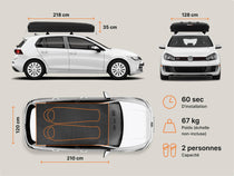 Vous pouvez laisser une TentBox sur votre voiture toute l'année, afin de pouvoir partir à l'aventure en un claquement de doigts. Tout est possible avec une TentBox, que vous partiez pour un week-end au camping après une longue semaine au travail, ou dormiez dans la rue de vos amis après une soirée.