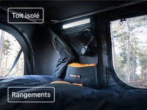 Non seulement être en hauteur vous offre une vue incroyable sur les paysages environnants, mais cela signifie aussi que vous êtes mieux protégé du froid, de l'humidité et des petites bestioles. La lame d'air entre la TentBox et le toit de votre voiture fournit une isolation naturelle, car la chaleur, au lieu de s'échapper dans le sol, reste dans votre tente.