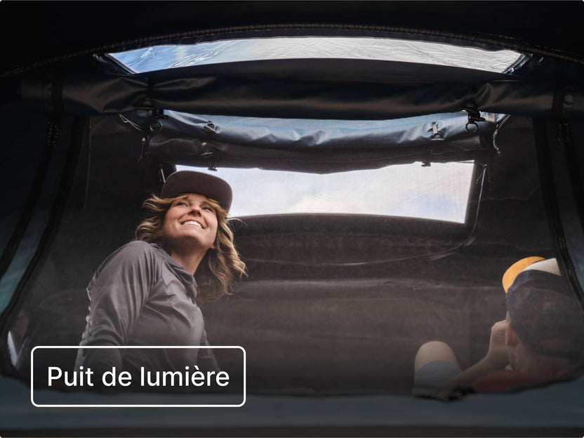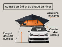 Non seulement être en hauteur vous offre une vue incroyable sur les paysages environnants, mais cela signifie aussi que vous êtes mieux protégé du froid, de l'humidité et des petites bestioles. La lame d'air entre la TentBox et le toit de votre voiture fournit une isolation naturelle, car la chaleur, au lieu de s'échapper dans le sol, reste dans votre tente.